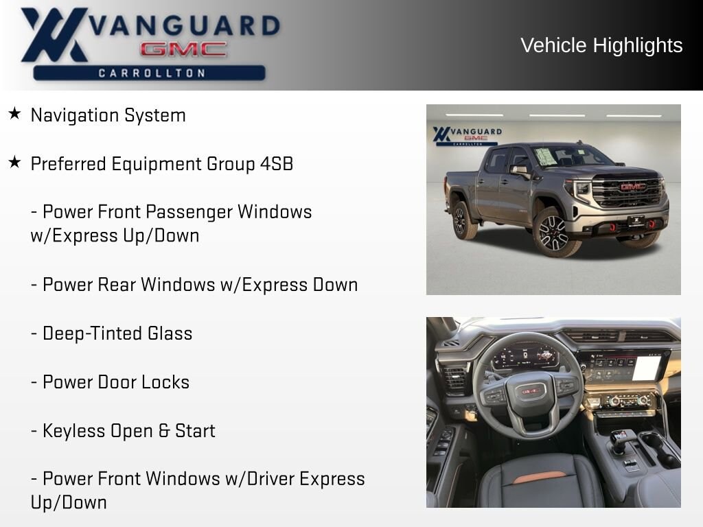 Discover the ultimate in capability, technology, and style with the 2026 GMC Sierra 1500 AT4 Technology Package. This remarkable truck is built to conquer any terrain, while delivering a refined and connected driving experience that will elevate your every adventure.Boasting a powerful 3.0L I6 engine and 10-speed automatic transmission, this Sierra AT4 is engineered to tackle the toughest challenges with ease. Equipped with the AT4 Premium Package, you'll enjoy a host of premium features, including: Rear Camera Mirror Multicolor 15 Diagonal Head-Up Display Power Sunroof Trailer Tire Pressure Monitor Sensors And moreThe Technology Package further enhances your driving experience, offering cutting-edge innovations like the Bed View Camera, Rear Cross Traffic Braking, and Wireless Charging. Stay connected and in control with the premium Bose sound system, SiriusXM with 360L, and seamless integration of Apple CarPlay and Android Auto.This Sierra AT4 also showcases its off-road prowess with features like Hill Descent Control, Off-Road High Clearance Steps, and a heavy-duty air filter. The spray-on bedliner, 220-amp alternator, and integrated trailer brake controller ensure you're ready for any job or adventure.Comfort and convenience are also at the forefront, with heated and ventilated front seats, a heated steering wheel, and a power sliding rear window. The Rear Camera Mirror and Multicolor Head-Up Display keep you informed and aware, while the Ultrasonic Front and Rear Park Assist makes maneuvering a breeze.Safety is paramount in the 2026 Sierra AT4, with advanced features like Automatic Emergency Braking, Lane Keep Assist, and Rear Pedestrian Detection. You can drive with confidence, knowing your vehicle is looking out for you.Elevate your driving experience and conquer the road ahead in the 2026 GMC Sierra 1500 AT4 Technology Package. Contact us today to schedule a test drive and discover the ultimate in capability, technology, and style. Price includes: $1750 - Buick & GMC Consumer Cash Program. Exp. 02/02/2026 $500 - GM Bonus Cash. Exp. 02/02/2026